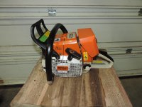 Here is your chance to own a piece of history, 440 ported by Mike himself. This saw is fairly clean and runs great, pulls a 28" full skip/8 pin well. The oiler went out last year and caused some heat build up around the inside clutch cover. The pump was replaced with a new OEM unit and it has been fine since. It will come with the Maxflow or factory HD setup, your choice. If you plan on doing a lot of cutting, the Maxflow works much better than the HD. That cover does make a beautiful saw look like crap though. Decomp is plugged and you will need to be 100% committed when pulling. The commiefornia clutch cover came off my smashed 044 and has a chunk missing out the rear, the rubber guard is gone also, all visual as it functions fine and clears noodles nicely. It has always been ran on a slightly rich 40:1 no corn/Klotz mix. Build date is 2004.